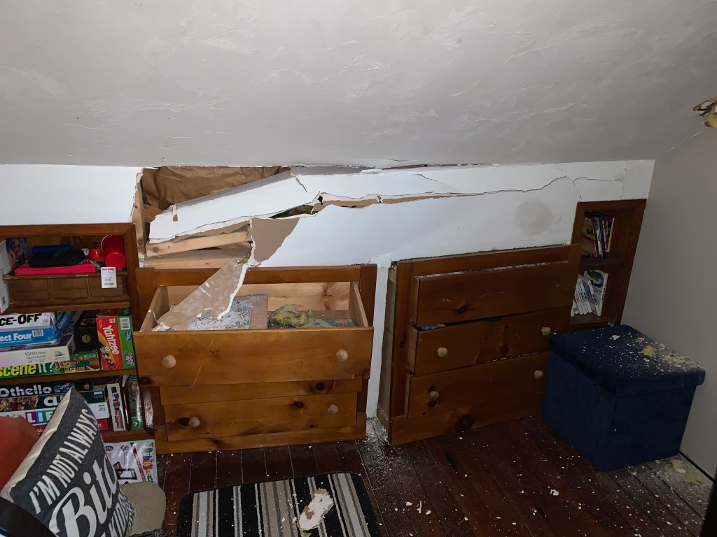 The quote above followed my introduction well because it was a traumatic natural disaster that my roommates and I went through this weekend. Obviously things could have been a lot worse and there are other disasters that are far more traumatizing and life threatening, but if there is one thing I have learned over the years it is that even though someone else might have it worse than you, that doesn’t mean that you’re not struggling. I try to work this into my daily life because I often find myself invalidating what I am going through because it “could be worse” and that is not a healthy way of thinking. To apply the General Adaptation Syndrome to my experience this weekend I would say that I was in the Alarm stage for a while. The first thing I did when it all happened was to get our two dogs to a safe place. I think this must have been my fight or flight response telling me to get the heck out of there, especially because my fur babies were in potential danger. I can remember my adrenaline pumping for quite a while after the event. Part of me thinks that I still might partially be in the alarm stage because none of it honestly feels real. A tree falling on my house is not a prolonged event that lasts a while, so it is hard to say if the resistance and exhaustion phase will even happen, nonetheless it was a traumatic event that caused my life to be uprooted (pun intended).